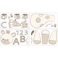 These adorable wall appliques are the perfect way to spruce up bare nursery or playroom walls! Set includes four 10 x 18 inch sheets of removable decals featuring two giraffes as well as fun blocks, letters, and numbers. When you're ready to change up the look, simply remove and reuse without harming your walls! Coordinates with the Snickerdoodle nursery collection from Cocalo Baby.