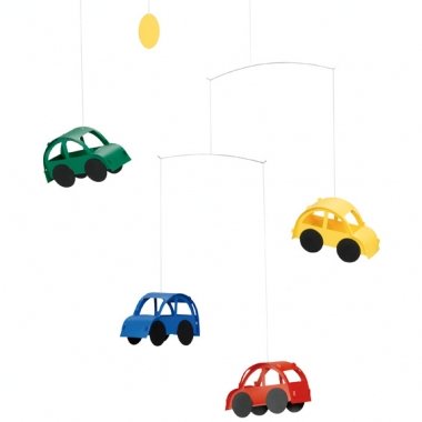 Flensted Mobiles are a traditional handicraft in Denmark. The first modern designer mobile was made there in 1954. Today Flensted Mobiles is based on the Danish island of Funen, the birthplace of Hans Christian Anderson, where it creates its very own design fairy tales from the old village school in Brenderup. Little boys love cars, and this is a popular small three dimensional mobile. This mobile is mounted on strings and pre assembled with the hanger system. You just need to click the single elements together. A semi assembled mobile. Spend fun time with your child.