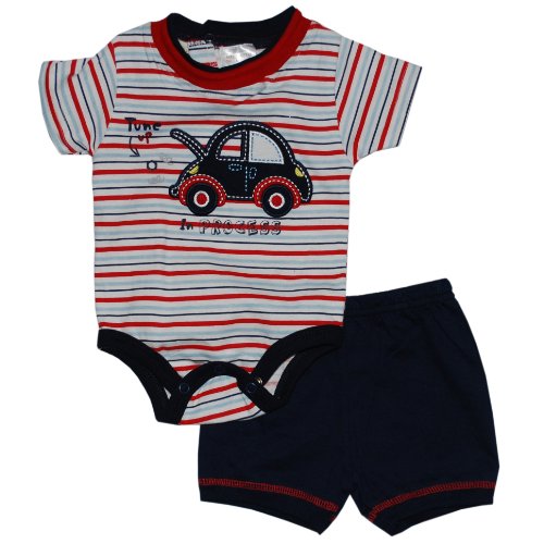 The Detailed Description of Baby Grand Boys 0-9 Months Car Bodysuit With Shorts (3/6 Months, Navy)