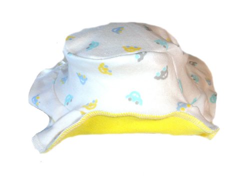 Adorable and perfect for sunny days!Protects babies eyes.100% cotton soft interlock knit floppy reversible sun hat.Two hats in one!One side is white with beetles car print.The other is bright yellow. Very cute!Six premature infant and infant baby sizes!Small preemies 3-6 pounds; small infant 5-8 pounds;newborn 8-12 pounds; 3-6 months; 6-12 months and 12- 24 months.Please select size when ordering.By Jacqui's Preemie Pride